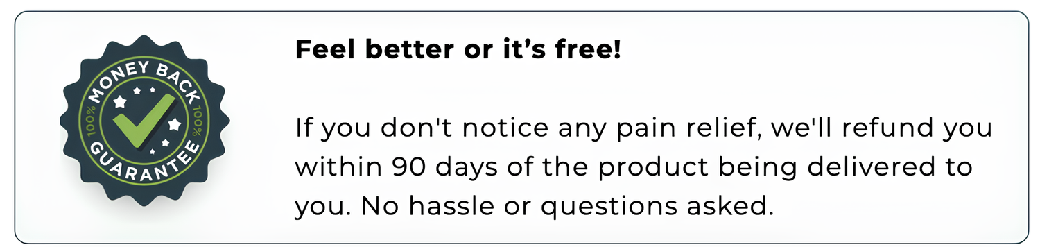 If you don't experience the remarkable relief that you were anticipating, or if you're not amazed by the newfound ease with which you move, then at any time in the next 90 days let us know and we will refund every single penny of your investment. No questions asked.