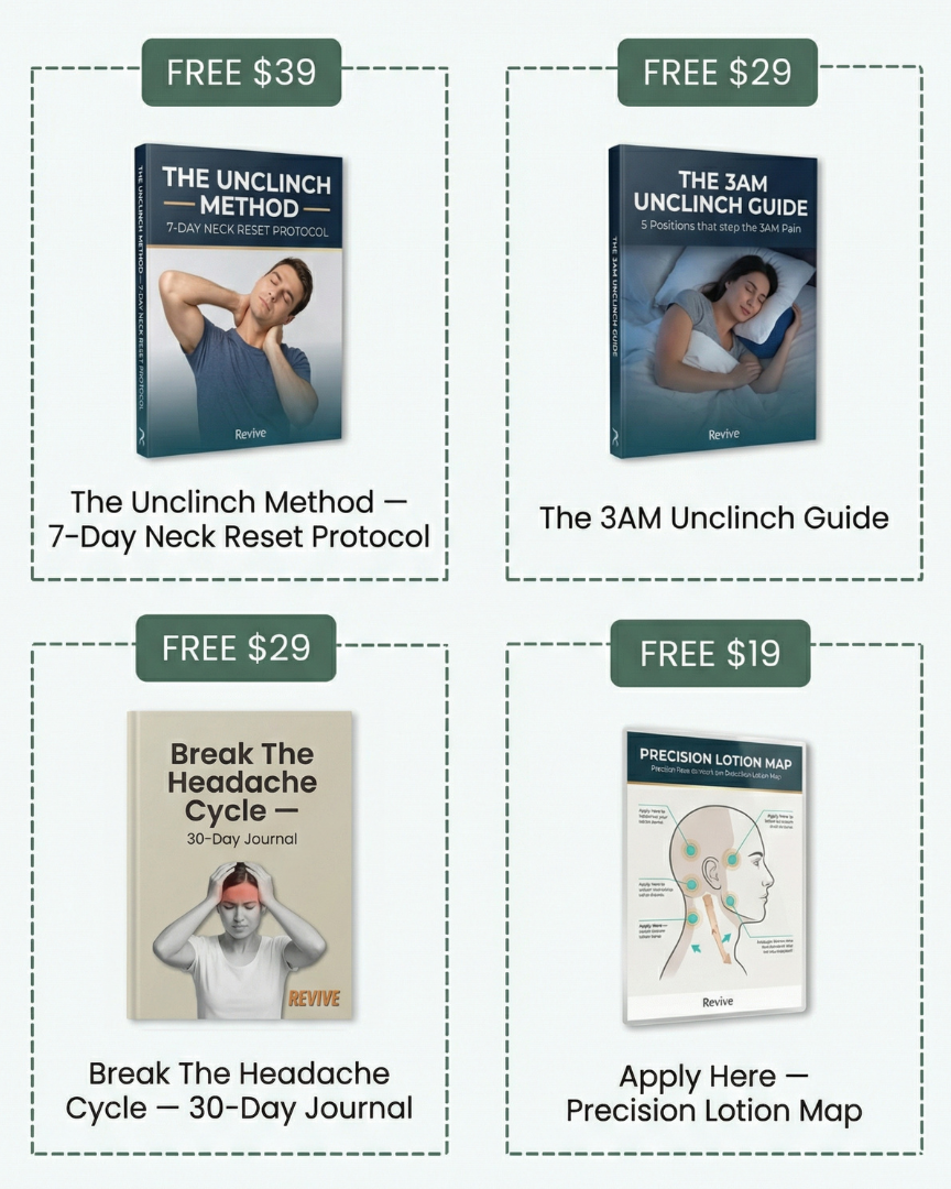Revive doesn't stop your stress. It stops the stress from locking your neck. And when the neck unlocks — the headache doesn't get its trigger. The anxiety doesn't get its fuel. The cycle breaks.